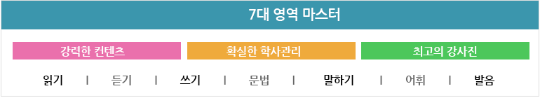 읽기,듣기,쓰기,문법,말하기,어휘,발음 영어 7대영역 완벽 마스터!